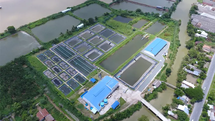 Our aquaculture R&D center is located in tropical Vietnam next to the Mekong river. This is ideal because we can do the research trials under near-market conditions. For example use water with similar quality parameters resembling the markets where we are present, in Vietnam, South East Asia and other warm water aquaculture producing countries. Water is pumped into sedimentation ponds to get rid of suspended solids, before it is pumped into a reservoir tank. From here gravity will take care of supplying water to the rest of the facility which consists of an indoor section and an outdoor section.